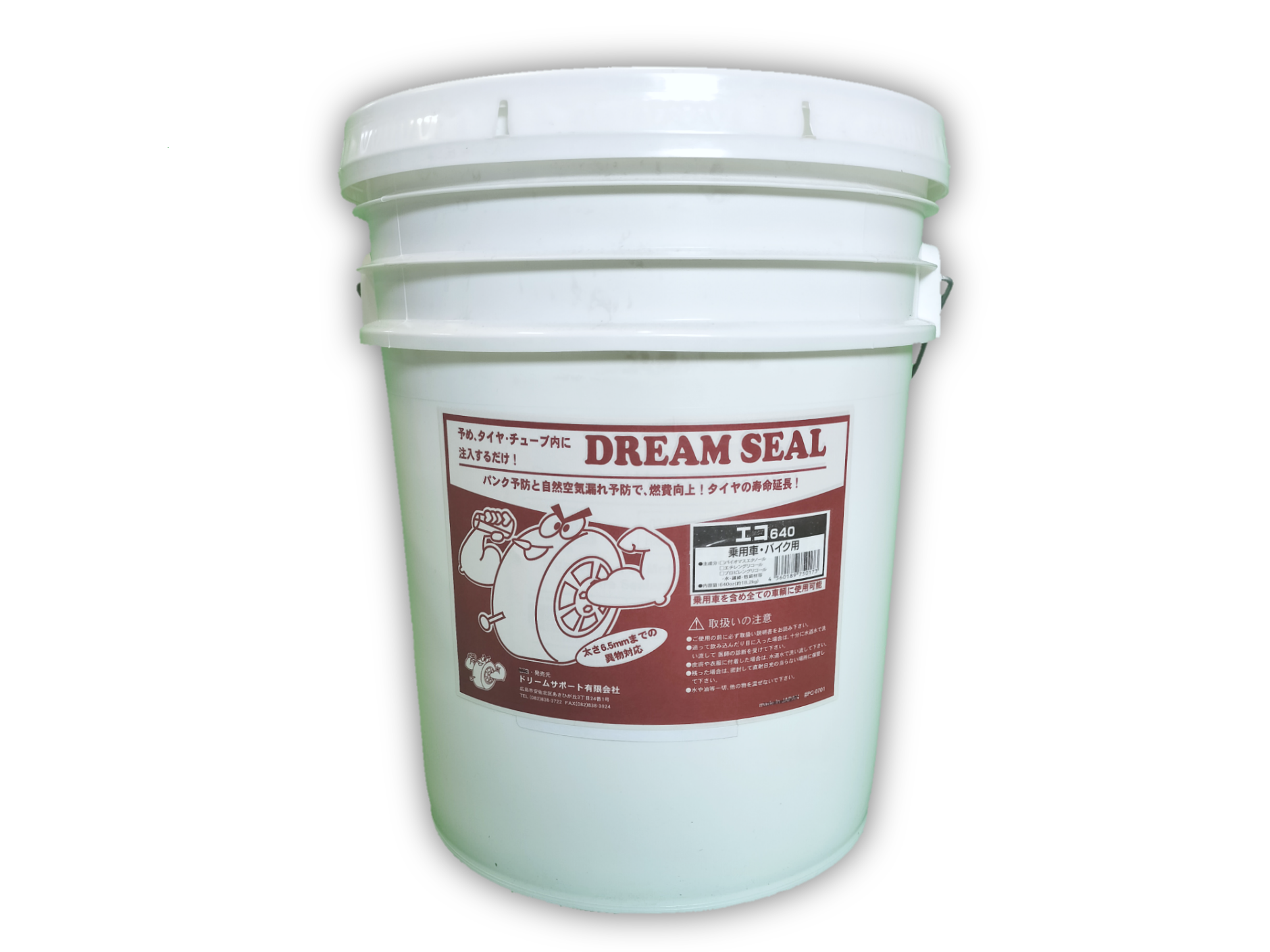 事前に、タイヤ内に水溶性のパンク防止・燃費向上剤乗用車・トラック用「ドリームシールエコ」を注入する事で太さ6,5㎜迄の釘突き刺しパンク防止します。又、トラック・建設機械用「ドリームシールコンバット12」を注入することでトラックタイヤ太さ鉄筋10㎜迄、建機タイヤ太さ12㎜迄の鉄筋突き刺しパンクを防止し、自然空気漏れとタイヤ冷却の相乗効果で燃費向上・CO2削減、タイヤ寿命が延長が実現します。