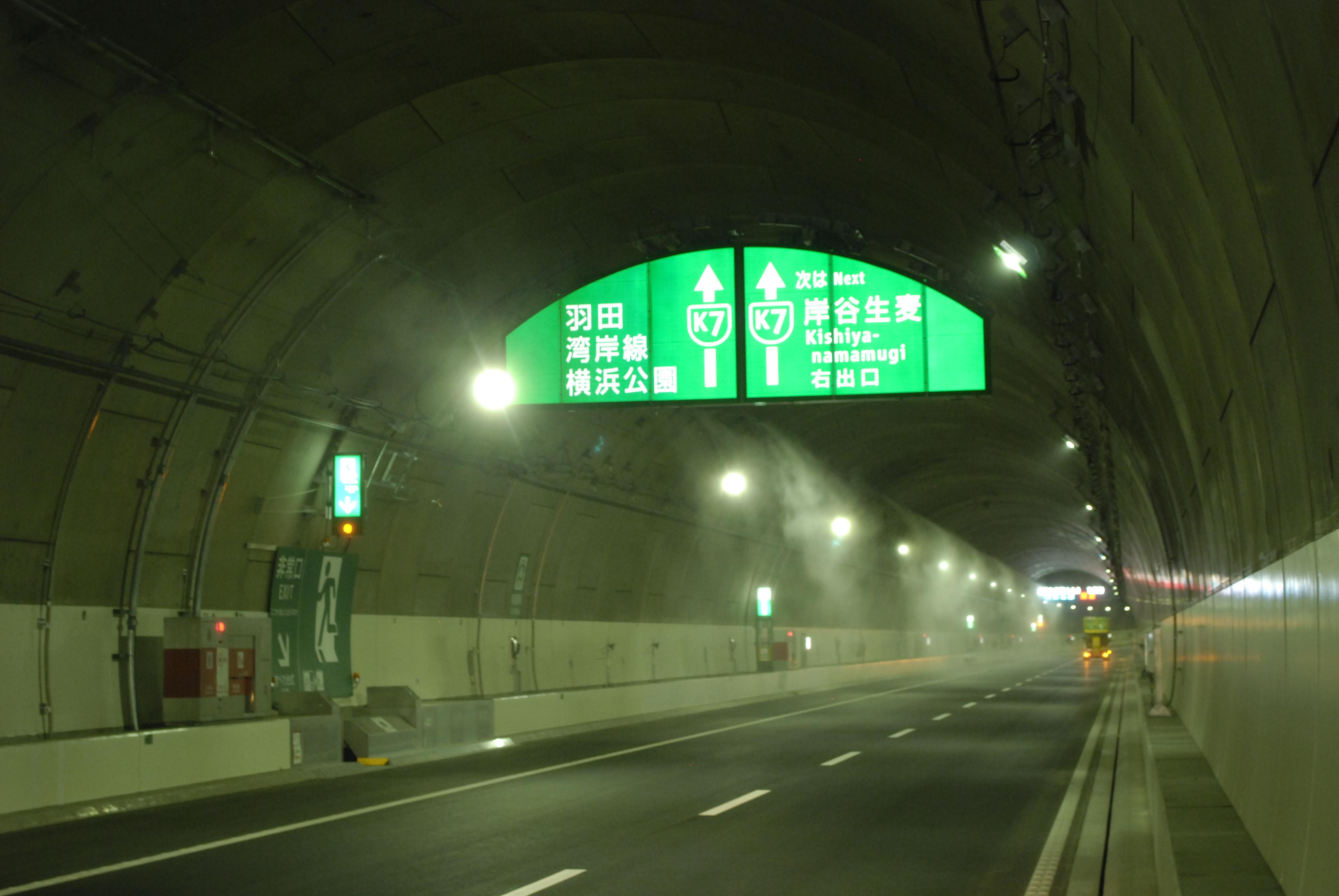 山手トンネル、横浜北トンネルのような延長が長く、交通量が多いトンネルでは夏季にトンネル内温度が高くなるため、トンネル内でミスト噴霧を実施し、温度の上昇を抑制しています。