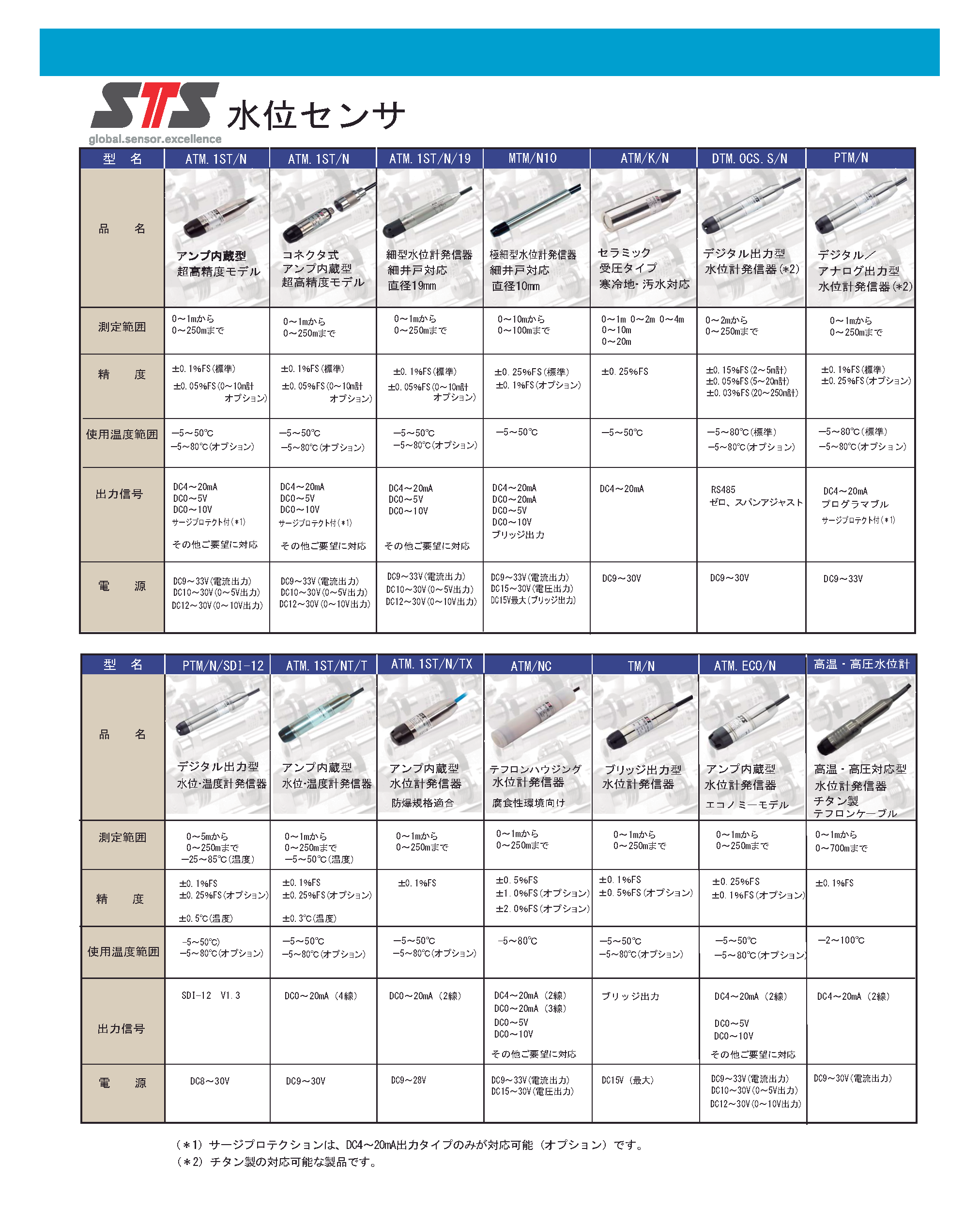 測定範囲:0~1m....0~250m 精度:0.01%/fs その他オプション:避雷素子内蔵、ケーブル登の接続コネクタ方式 |