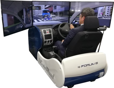 当社の3D・VRシミュレーション(Uc-Win/Road)本体とOEM提供を受けた実車型ドライブシミュレータを組合せた本格的なドライブシミュレーションです。