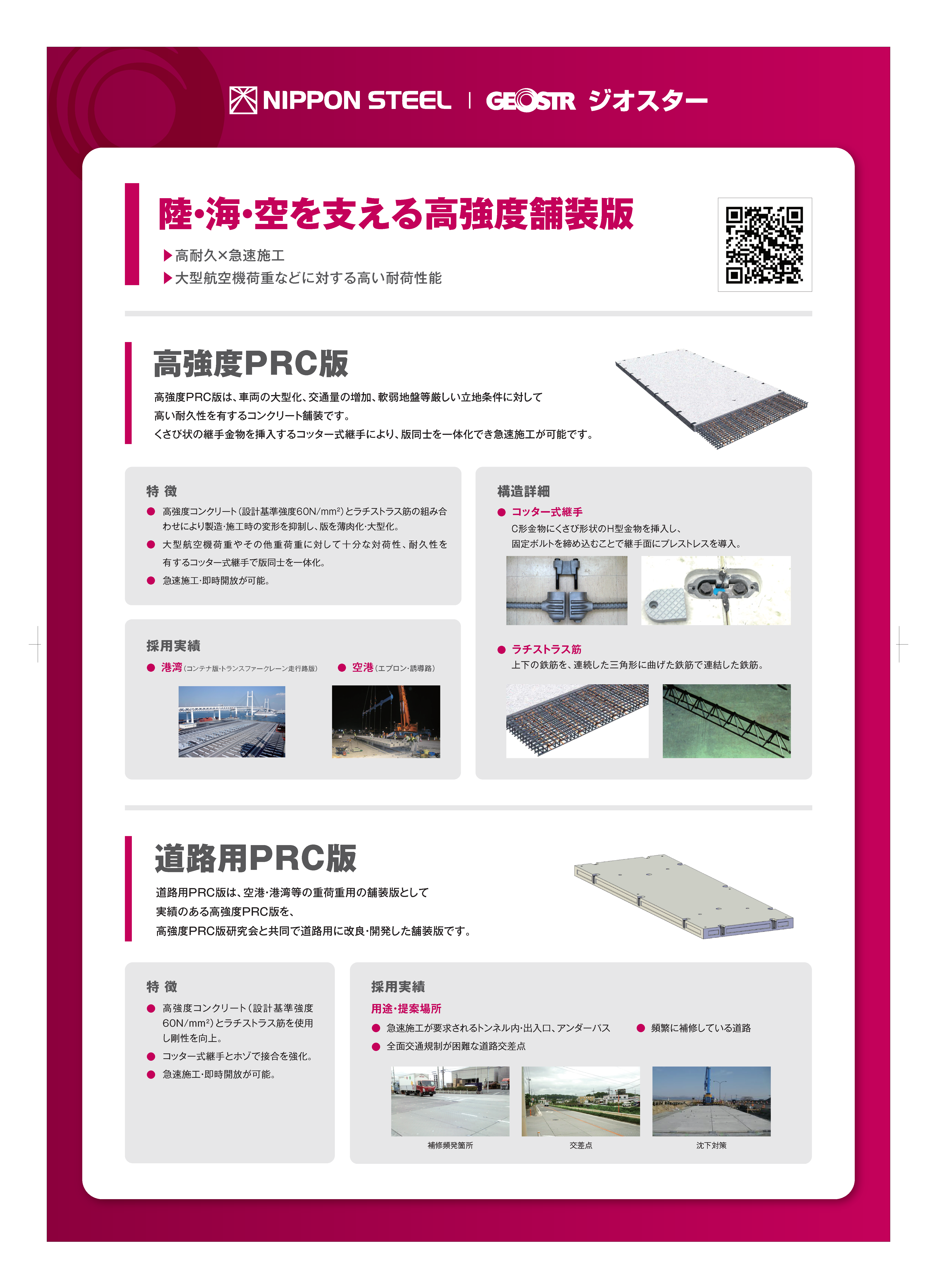 | 技術の概要・特徴 | 陸・海・空を支える高強度舗装版 |