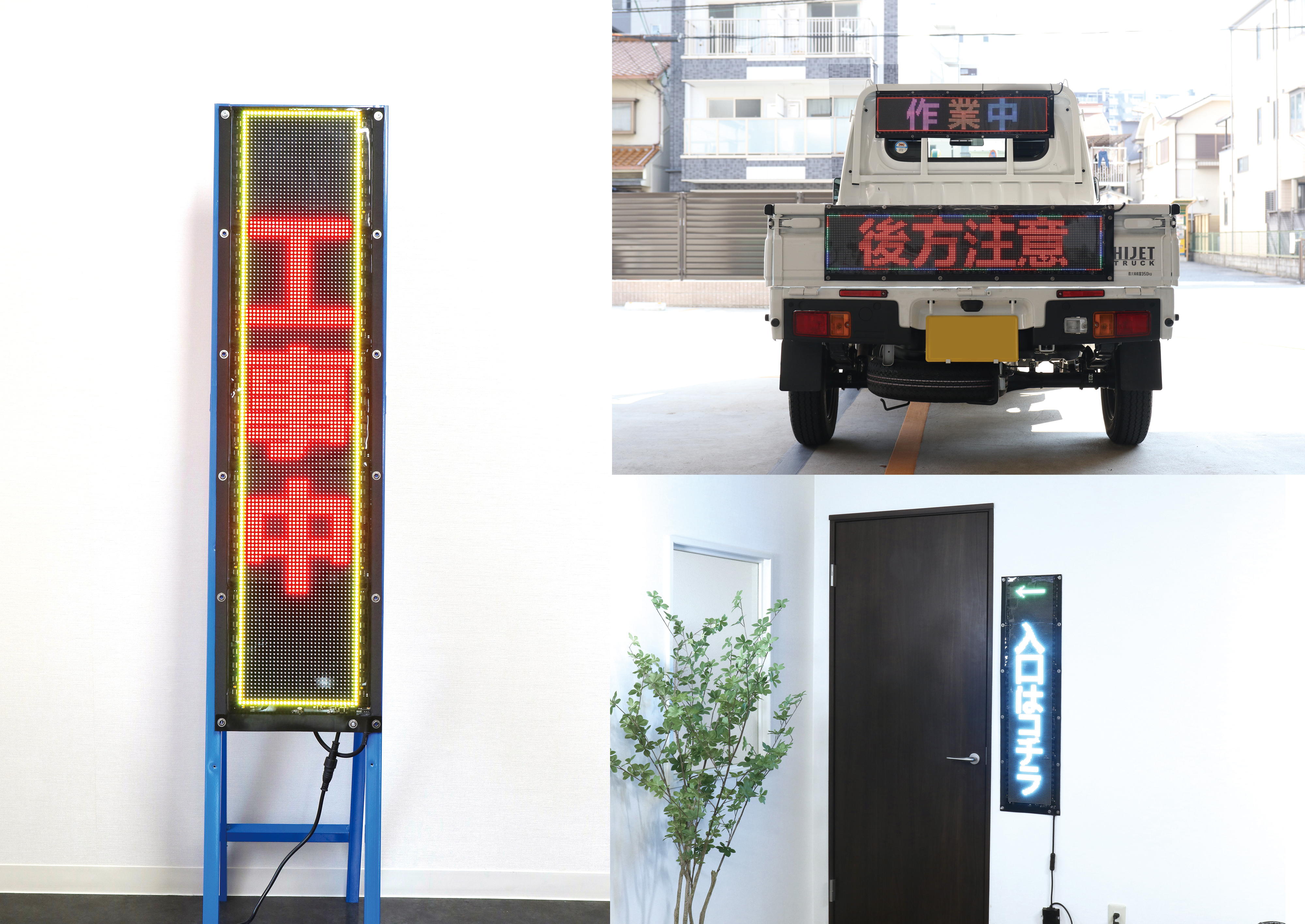 薄型・軽量で、柔軟に設置が可能なフルカラーLED電光掲示板です。