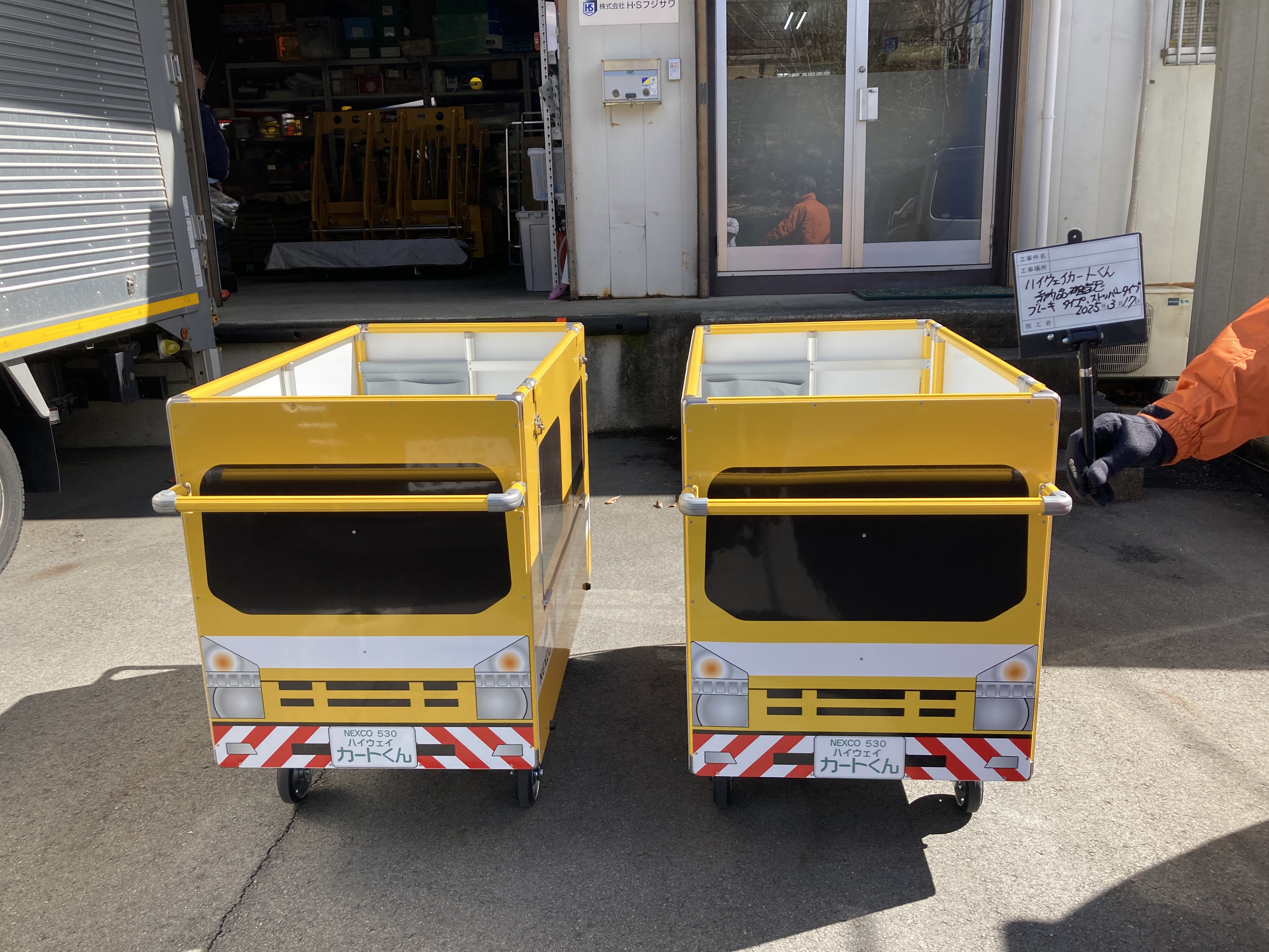 毎日のゴミ回収には、エリアキャストがカート君(旧型)を使用して、運搬作業を行っている。カート君はFRP(強化プラスチック)製で重量が約45㎏あり、エリアキャストの作業の軽減、現場からの「軽くして欲しい」との声を受けて、ゴミ搬送用カートをアルミ材を用い軽量化した新型カート君を製作を行った。エリアキャストの高齢者や女性の多い現状に配慮し、作業の軽減、安全性向上した製品。