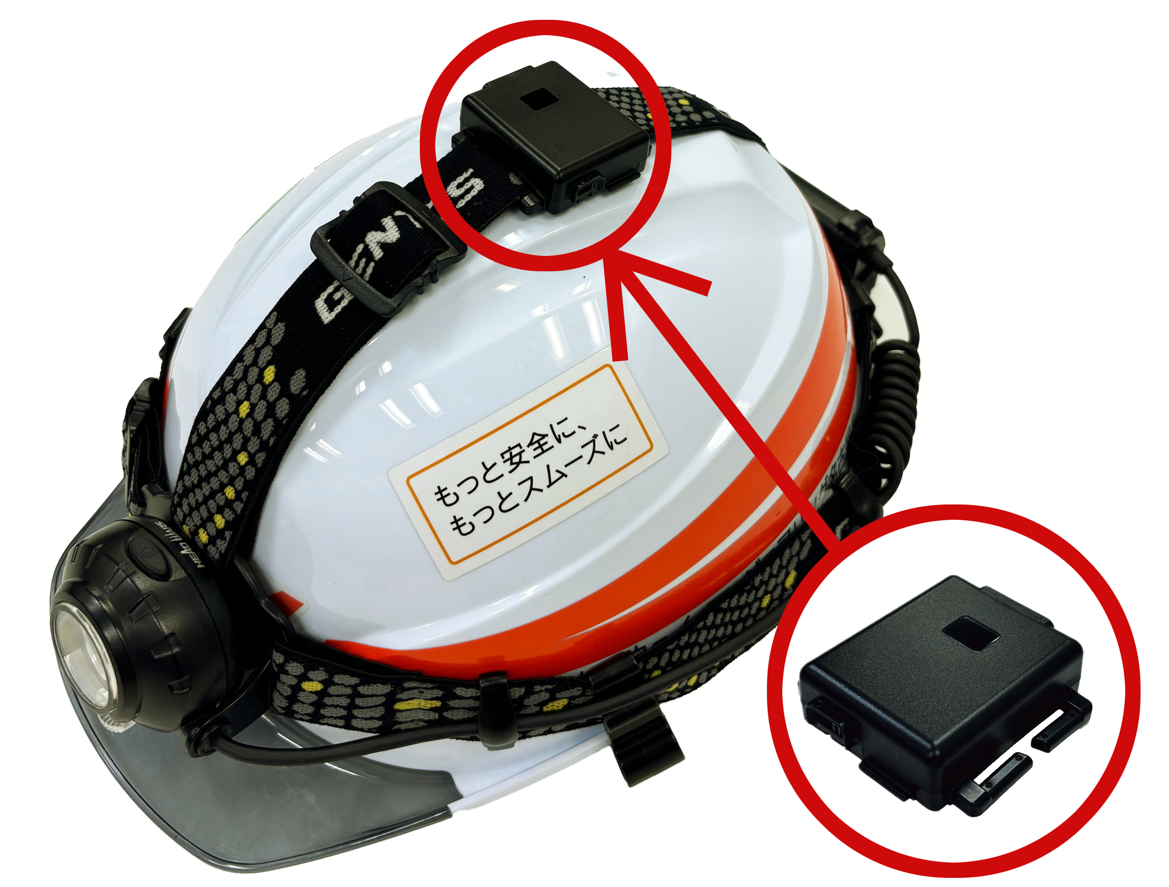 ヘルメット装着型小型近接アラートセンサー。