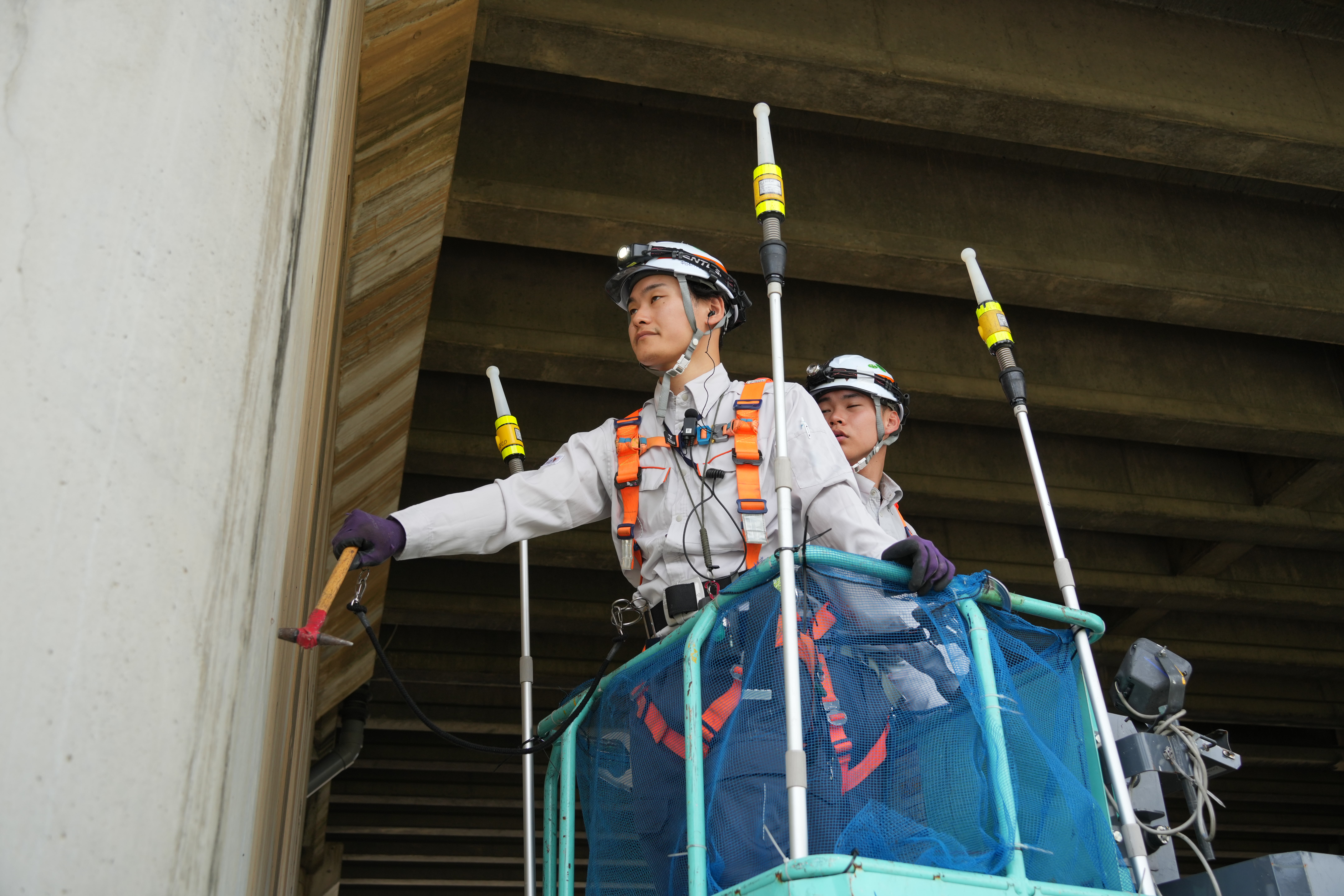 高所作業車を使用する点検や工事現場など接触および挟まれ防止を目的とする多くのシーンで活用できます。