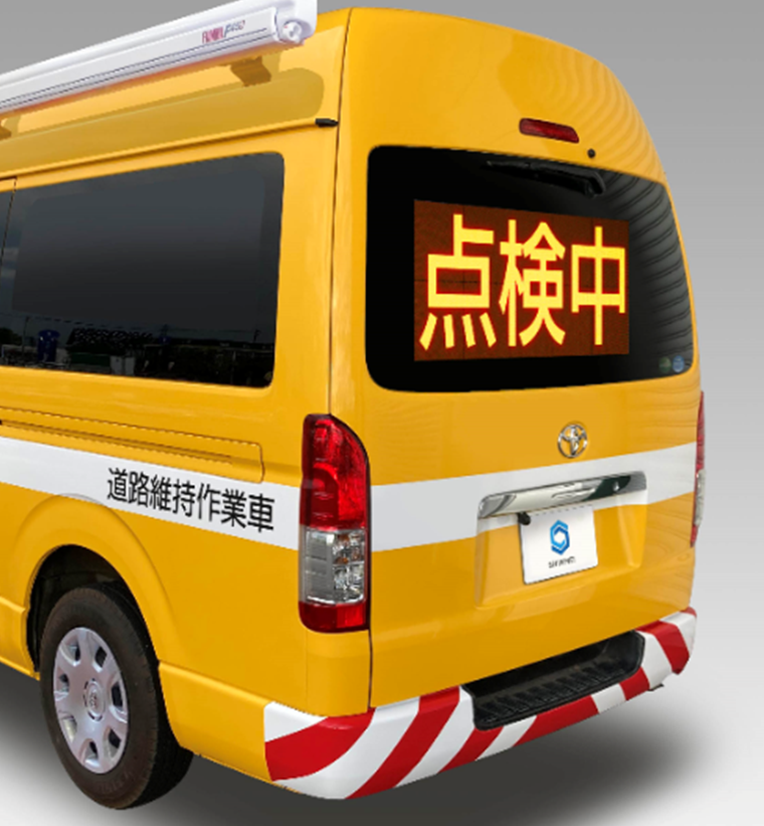 高輝度・高精細なLEDを用いた情報提供装置で、文字や画像、動画を多彩に表現できます。様々な車両のリアウィンドウに取り付け可能です